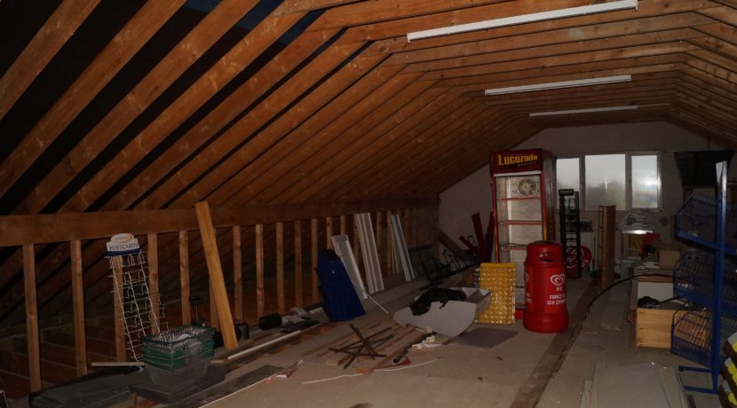 – Storage area, bathroom and kitchen on the ground floor. A pine staircase leads to the first floor area which is ideal for conversion to an apartment or carte blanche for living quarters